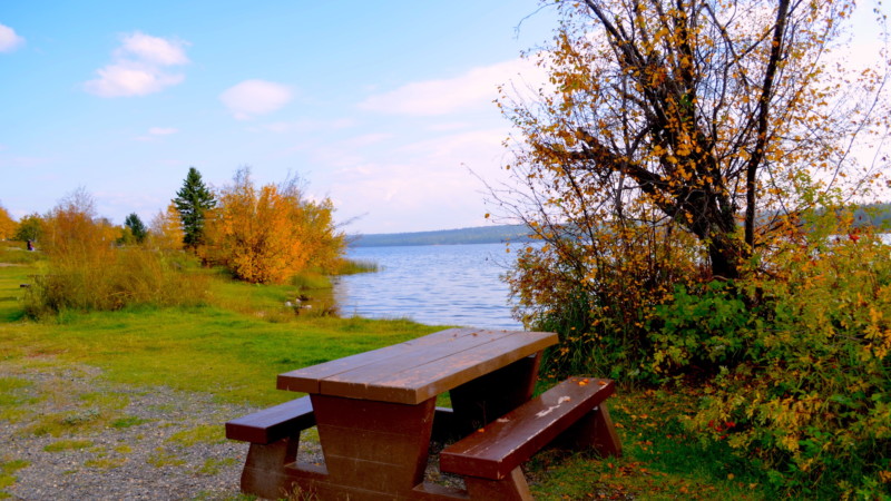 The “South Road” site is a smaller camping area and can be accessed by turning onto Chimney Lake Rd South. This site has 7 pads, 1 garbage can, and 1 toilet. Preferred by groups using the community hall, and golfers.